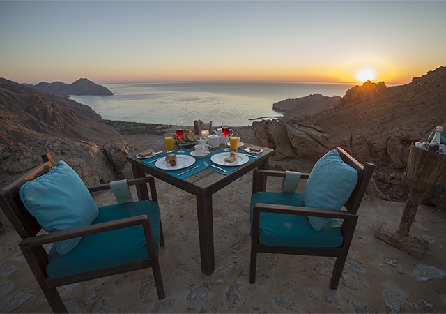La côte déchiquetée offre l’un des fonds marin le plus préservé qu’il soit. Sur le détroit d’Ormuz, vous apercevrez ce resort, inspiré des constructions locales, aux tons de sable et à l’allure écolo chic.
